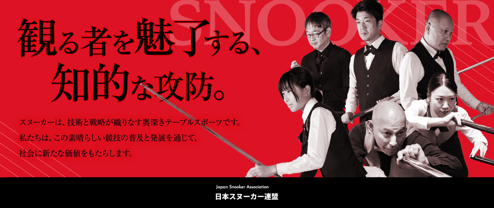NEWS 新着情報 記事カテゴリー NEWS 国内大会 イベント情報 国際大会 2026年1月 G3結果 2026-02-042026-02-04 | 国内大会 2026年2月【G2】JSA Championship ドロー 2026-02-012026-02-01 | 国内大会 2026年2月【G2】JSA Championship 要項 2026-01-072026-01-07 | 国内大会 2026年1月(G3)地区ランキング戦開催のお知らせ 2025-12-232026-02-04 | 国内大会 第25回 スヌーカージャパンオープン 試合結果 2025-12-032025-12-03 | 国内大会 2025年10月 G3地区ランキング戦結果 2025-11-032025-11-08 | 国内大会 GAMES 競技説明 競技ごとのルール、用語説明、マナー、観戦ガイドをご覧いただけます。 加盟・協力団体 独立行政法人 日本スポーツ振興センター 公益社団法人 日本ビリヤード協会 International billiards & Snooker Federation Asian Confederation of Billiard Sports